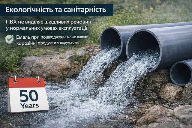 Преимущества ПВХ (PVC) над эмалированной трубой