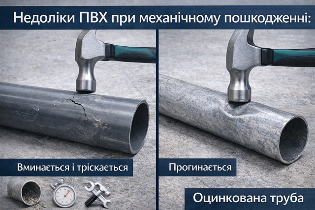 | Критерий | ПВХ (PVC-U) | Оцинкованная труба |
